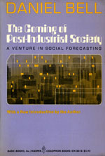 Daniel Bell, The Coming of Post-Industrial Society. A Venture in Social Forecasting, New York: Basic Books 1973; dt.: Die nachindustrielle Gesellschaft, Frankfurt a.M.: Campus 1975; zahlreiche weitere Auflagen und Ausgaben. Zitiert wird im Folgenden nach der amerikanischen Ausgabe von 1999. Die Seitenzählung entspricht der Erstausgabe. Die Coverabbildung zeigt die Ausgabe von 1976 (© Perseus Books).