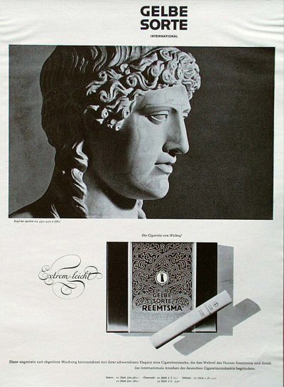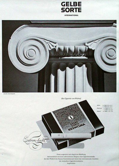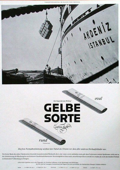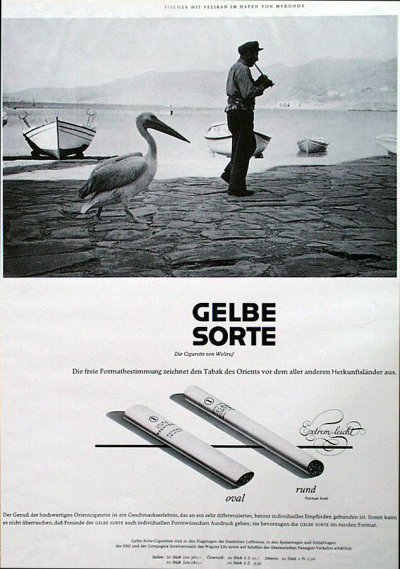 Wie es dazu kam, dass Reemtsma einen aufstrebenden Fotografen zwei Monate lang durch Griechenland und die Türkei reisen ließ, aus der großen Menge qualitativ hochwertiger Fotos aber nur ganz wenige auswählte und die Bilder auch später nicht mehr verwendete, ist nicht mehr zu rekonstruieren. Immerhin gibt es einige Hinweise zum Hintergrund des Auftrags: Die 1921 eingeführte Marke „Gelbe Sorte“ hatte vor dem Zweiten Weltkrieg mit einem Preis von 6 Pfennig pro Stück zu den teureren Marken gehört; der stets bescheidene, aber stabile Umsatz war nach 1930 abgesackt, und wie alle Vorkriegsmarken war sie im Jahr 1942 eingestellt worden. 1953 kam die „Gelbe Sorte“ - unverändert als Orientzigarette - wieder auf den Markt, doch auch nun blieben die Umsätze bescheiden. Auffällig ist, dass in der Werbung vor 1942 versucht wurde, das Image einer mondänen Luxus-Zigarette aufzubauen, nach 1953 hingegen das einer edlen Orient-Spezialität unter den marktbeherrschenden Virginiamischungen.