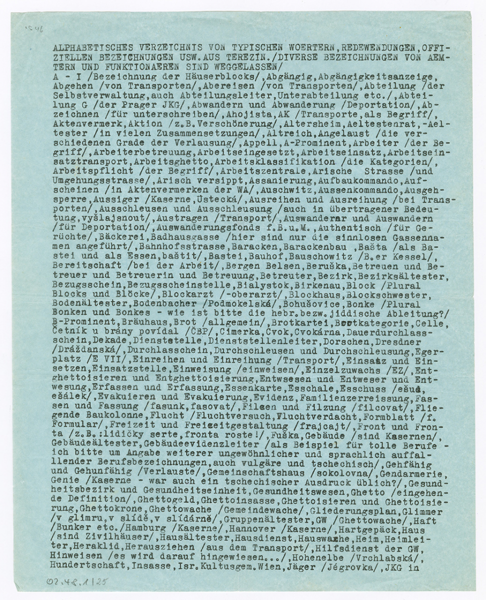 2. The ›Wörterverzeichnis‹ of Theresienstadt 1941–1945