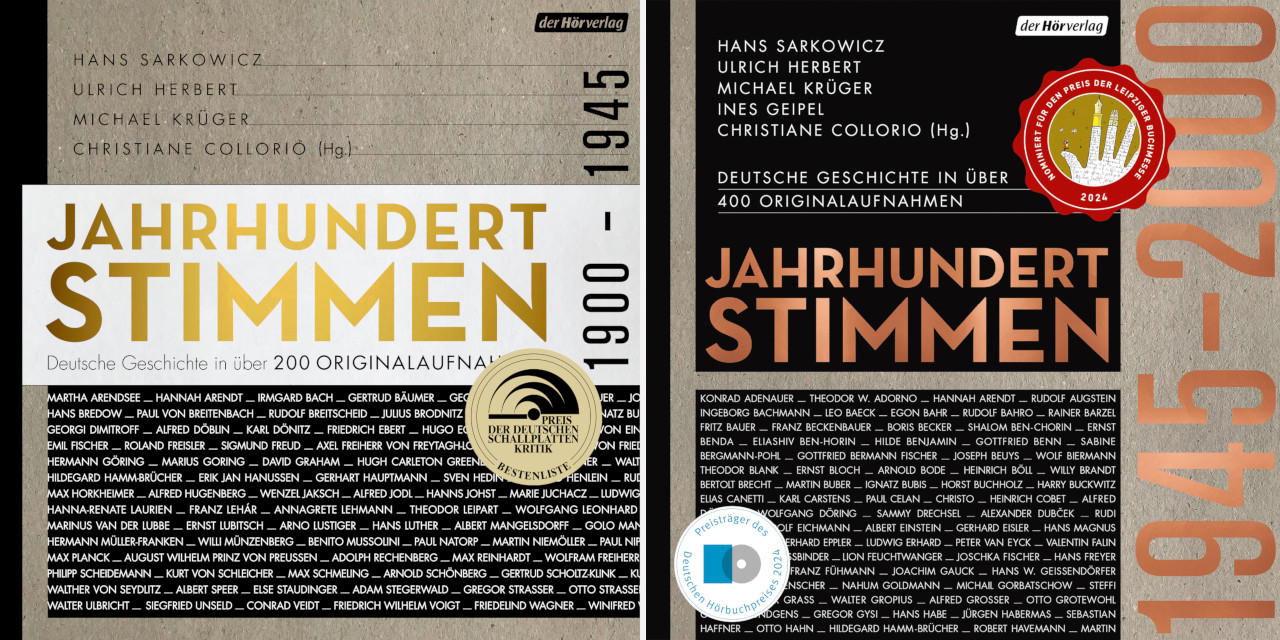 Hans Sarkowicz/Ulrich Herbert/Michael Krüger/Ines Geipel/Christiane Collorio (Hg.), Jahrhundertstimmen 1945–2000. Deutsche Geschichte in über 400 Originalaufnahmen, Hessischer Rundfunk/Der Hörverlag, München 2023.